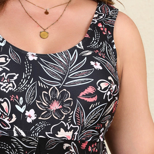 One-piece Double Shoulder Conservative Stitching Swing Retro Printed Swimsuit