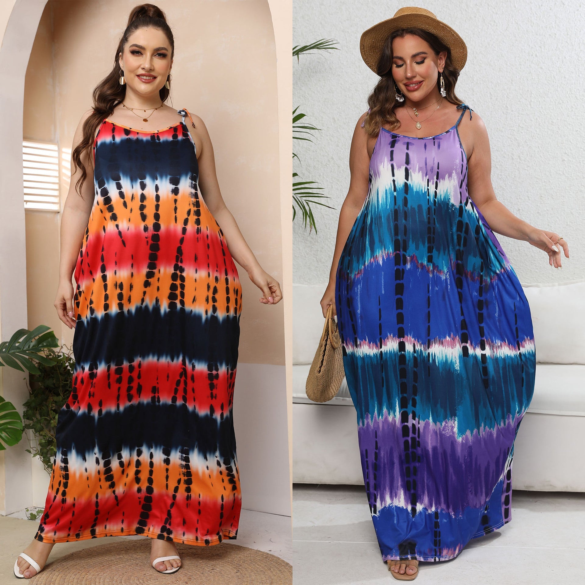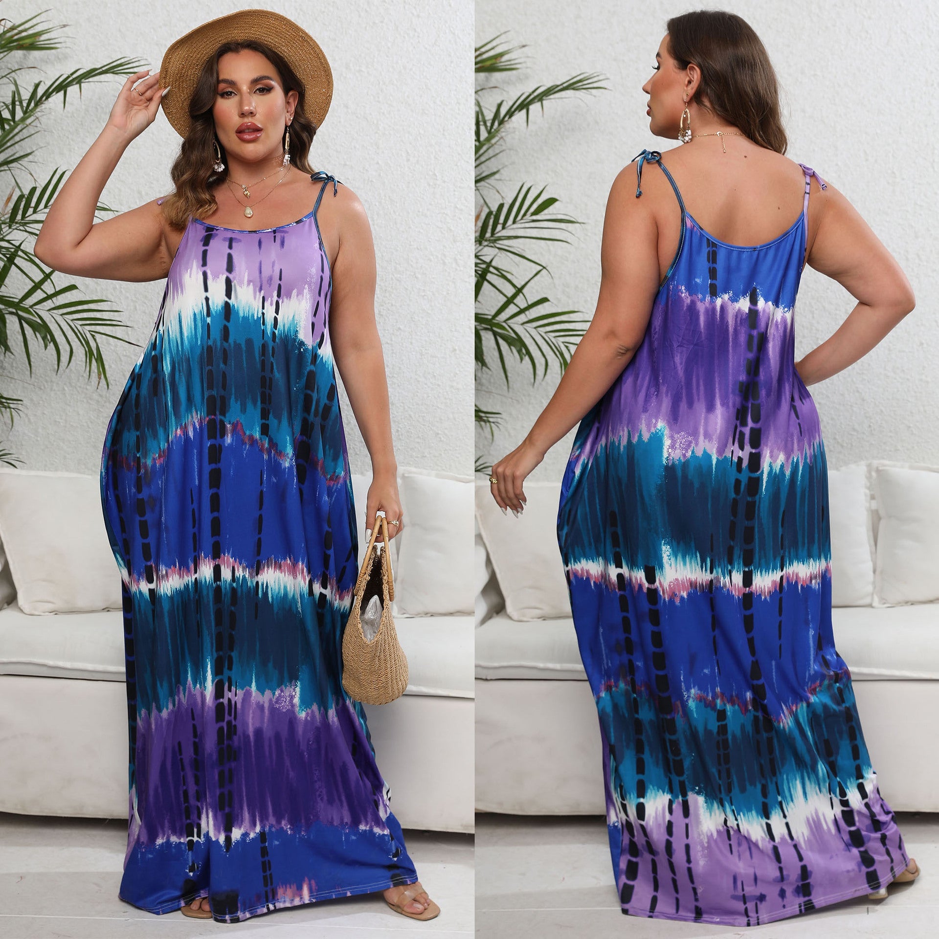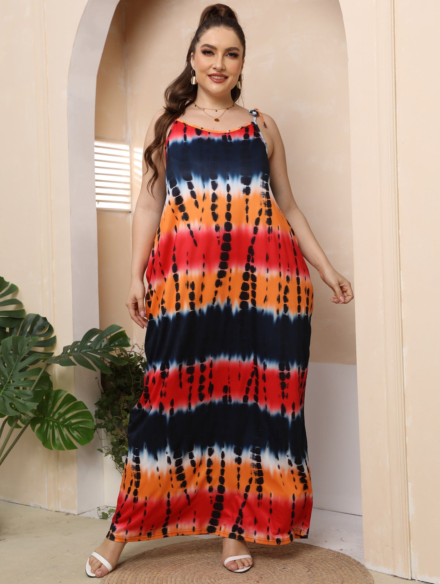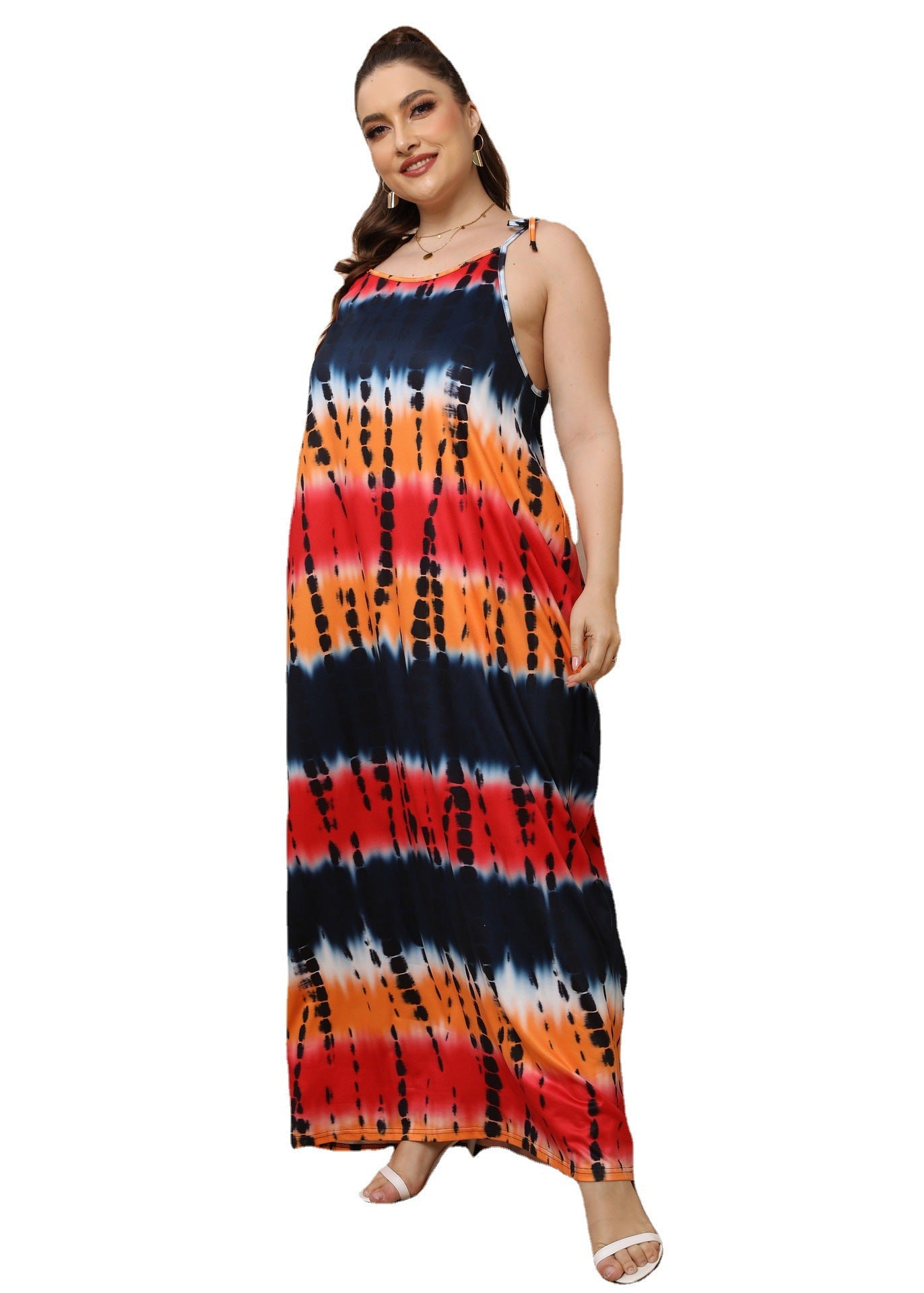 Tie Dye Printed Lace Up Loose Suspender Skirt